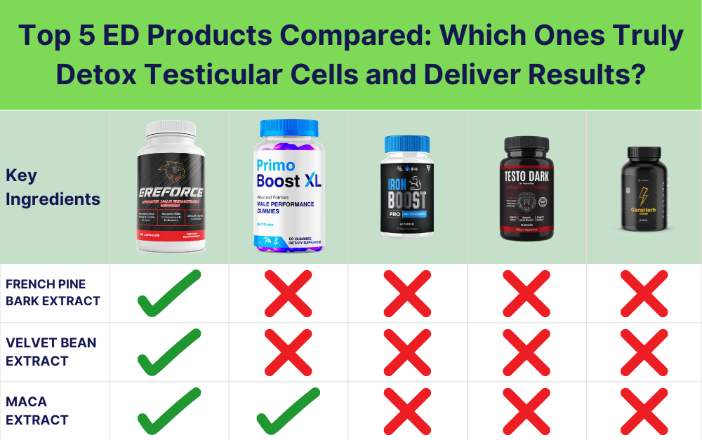 Our comparison isn’t here to discredit every other supplement or ingredient on the market. But let’s be honest — the latest scientific research, widely covered by leading news outlets across the globe, makes one thing crystal clear: only a handful of ingredients truly work when it comes to detoxifying testicular interstitial cells — the critical trigger for real, lasting Erectile Dysfunction.