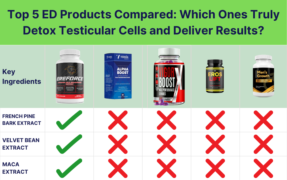 Our comparison isn’t here to discredit every other supplement or ingredient on the market. But let’s be honest — the latest scientific research, widely covered by leading news outlets across the globe, makes one thing crystal clear: only a handful of ingredients truly work when it comes to detoxifying testicular interstitial cells — the critical trigger for real, lasting Erectile Dysfunction.