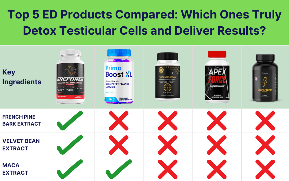 Our comparison isn’t here to discredit every other supplement or ingredient on the market. But let’s be honest — the latest scientific research, widely covered by leading news outlets across the globe, makes one thing crystal clear: only a handful of ingredients truly work when it comes to detoxifying testicular interstitial cells — the critical trigger for real, lasting Erectile Dysfunction.